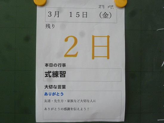 いよいよ、残すところ、あと2日となりました。校内を回ってみると、どのクラスも卒業や当該学年の修了に向けた構えができつつあります。また、思い出作りを楽しんでいるクラスもあり、一っ子と担任が一つになって、素敵な時間を創っていました。1年生はドッジボールを楽しんでいました。2年生は、「思い出になるお楽しみ会」を実施。3年生は、一年間使った下駄場を次に使う人のために、きれいに掃除していました。4年生は、主に算数と理科をお習いした高橋和彦先生に感謝する会を催していました。5年生も、ゲームなどのお楽しみ会を実施。そして6年生は、自分のプロフィールや作文を書いていました。卒業文集かな・・・?ご承知の通り、明後日、3月17日は日曜日ですが、登校日です。修了式と卒業式準備などが行われます。お弁当も必要ですので、どうぞよろしくお願いいたします。