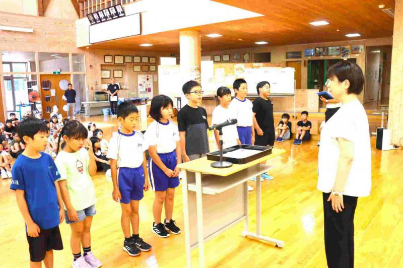 本日の全校朝会で、2学期学級委員の任命と代表児童の作文発表を行いました。学級委員になった子供たちは、いずれも堂々としており、大変やる気を感じます。がんばってほしいです。4年生の代表児童も、2学期にがんばりたいことをしっかりと発表することができました。先週から始まった2学期ですが、改めて気持ちを引き締めることができたように思います。