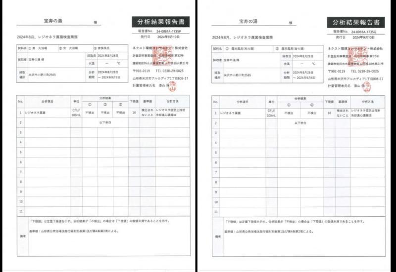先日、レジオネラ属菌検査をしました。全部の浴槽で検査しましたが、不検出でした。これからもスタッフみんなですばらしい温泉を活かしていけるように取り組んでいきます。夜の掃除もがんばります〜