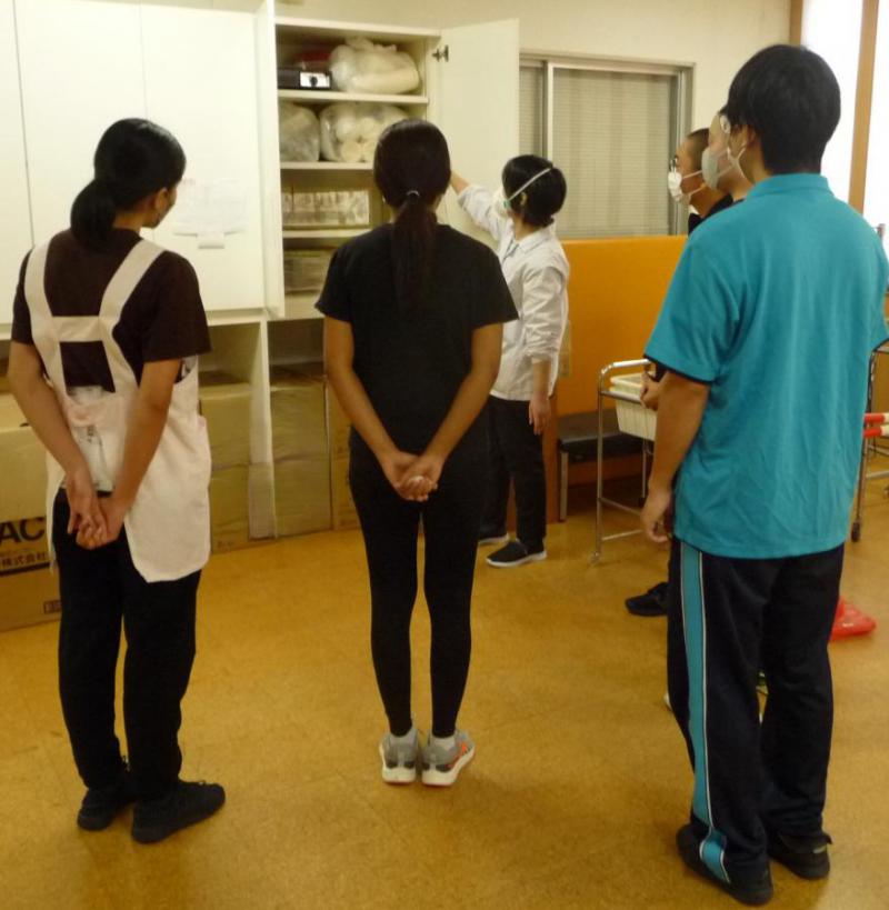12月5日(木)、花の里にて防災訓練を行いました。最初に、施設内非常食保管場所の確認を行いました。その際、花の里の管理栄養士より、備蓄品や非常食の重要性について説明して頂きました。続いて業者の方をお招きして、AED講習、通報避難訓練、消火訓練を行いました。AED講習では、AEDの電源の入れ方や電極パッドの貼り付け位置、必要に応じて電気ショックを実施するといった正しい使用方法を教えて頂きました。その際、人形を用いて反応の確認や呼びかけ、心肺蘇生等を行いました。通報避難訓練では、日中の火災を想定し、常日頃の防災に対する意識の徹底を図ることを目的とし、訓練を行いました。消火訓練では、消火用散水栓の使用方法を教えて頂き、出火を想定し、実際に放水をしました。今回の防災訓練は、職員一人一人の防災意識の向上に繋がる訓練となりました。花の里では、引き続き利用者様と職員の命を守る為、今後も施設内において、様々な訓練をしていきたいと考えております。