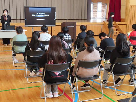 12月5日、米沢市上杉博物館の学芸員、遠藤友紀様、菊池優希様をお招きし、6年生の洛中洛外図屏風学習会が行われました。昨日持ってきていただいたのは当然レプリカですが、本物は国宝に指定されているとても貴重なものです。建築様式の変化により、現在は日常生活で屏風を目にすることはほぼなくなったように思います。今回は、日本古来からの宝物であるその屏風を間近に見る機会に恵まれました。しかも、国宝に指定されるほどの屏風の詳細を学習することができるとあり、6年生の目はキラキラと輝いていました。屏風の仕組みや数え方、描かれている人物や情景、そして金色のもくもくしたものの役割など、丁寧にわかりやすく教えていただきました。一っ子たちは日本の文化に触れ、時代背景だけでなく、今の自分達とのかかわりや職人技の素晴らしさも実感することができたようでした。ちなみに、国宝の洛中洛外図屏風(本物)は、2025年の春に、米沢市上杉博物館で展示されるそうです。お出かけしてみてはいかがですか?