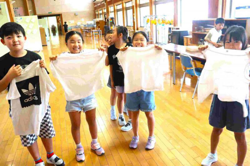 3年生が、総合的な学習に時間に地域の先生をお呼びして、草木染を教えていただきました。今回は、「叩き染め」というシソの葉やサツマイモの葉、ナスの皮などを使っての染物でした。地域の先生の話をよく聞いて、しっかりと学習していました。次は自分たちだけでもできそうです。本日は、地域の先生として西部地区の方においでいただきました。学校統合に向けても地域のつながりを感じ、ありがたく思いました。