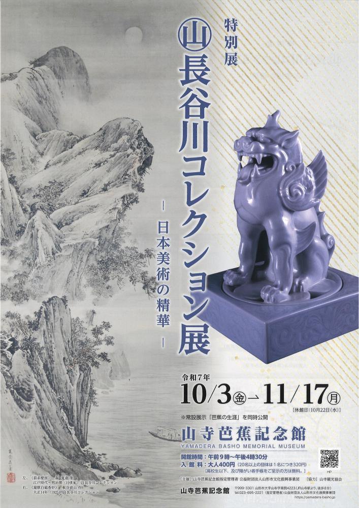 特別展「長谷川コレクション展 ー日本美術の精華ー」出品目録★ダウンロード →https://ssl.samidare.jp/~lavo/basho/box/20251014165242_00001.jpg※山形県指定有形文化財「細雨」は、10月21日(火)までの展示になります。