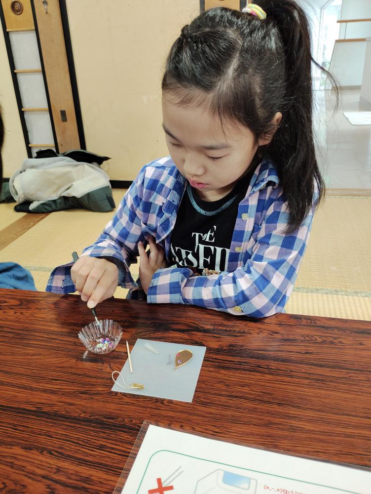 人気のレジンアクセサリーづくり。世界に一つだけのオリジナルアクセサリー☆みんな、上手にできたね(*^-^*)※ お子様のお写真は、ご本人、親御さんの了承を得て掲載しています。